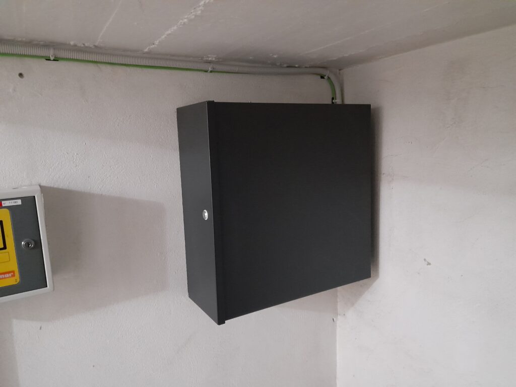 Para garantizar un funcionamiento eficaz y una máxima protección, el grabador de las cámaras se ha instalado en un armario metálico cerrado con llave, lo que impide el acceso no autorizado al sistema de grabación. Este tipo de solución protege tanto el equipo como las evidencias registradas ante cualquier intento de sabotaje.